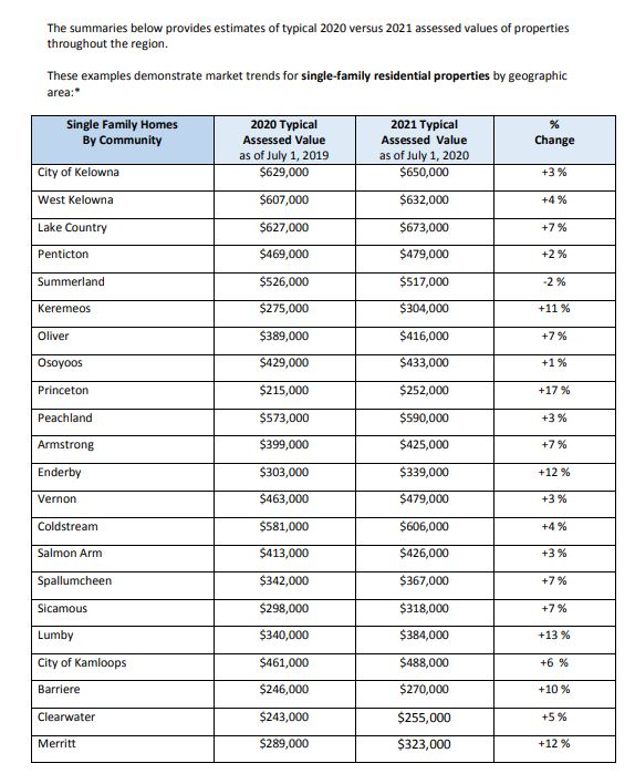 Property assessments up by average of 3-4 per cent in Vernon, Coldstream and Kelowna