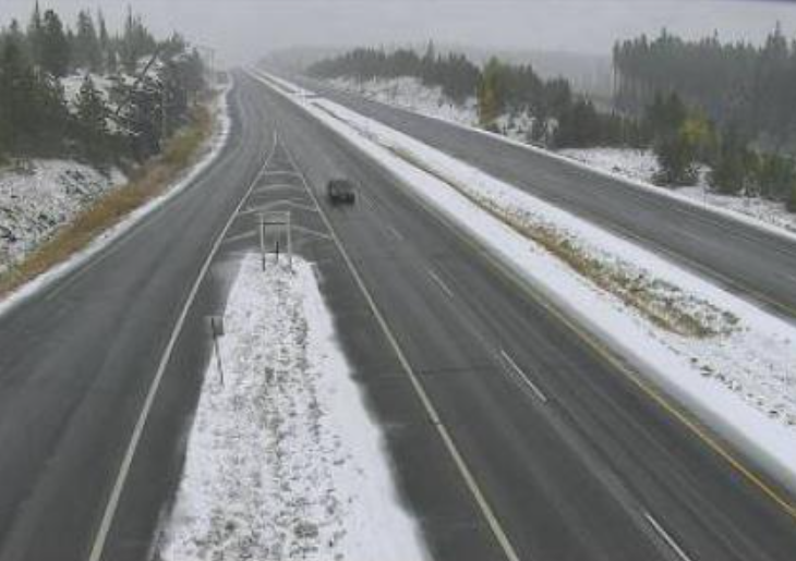 Pennask Summit on the Okanagan Connector at 9:09 a.m. Friday, Oct. 21 (photo courtesy of DriveBC)