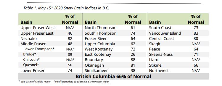 In the Okanagan, as of May 15, it was 81 per cent of normal for this time of year.