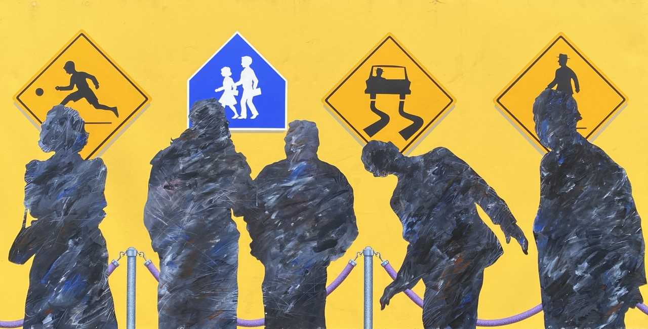 Steve Mennie’s Semiotically Speaking at Kelowna International Airport (photo credit: Kelowna Art Gallery)Airport visitors will see examples of common road signs that, when taken out of their regular context, may cause them to scratch their heads and think, “how’d we ever decide that this is supposed to represent this idea?”
